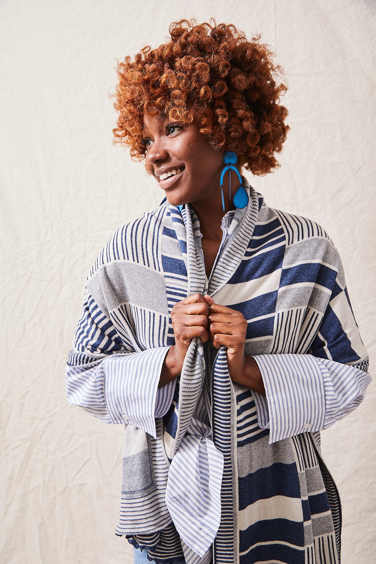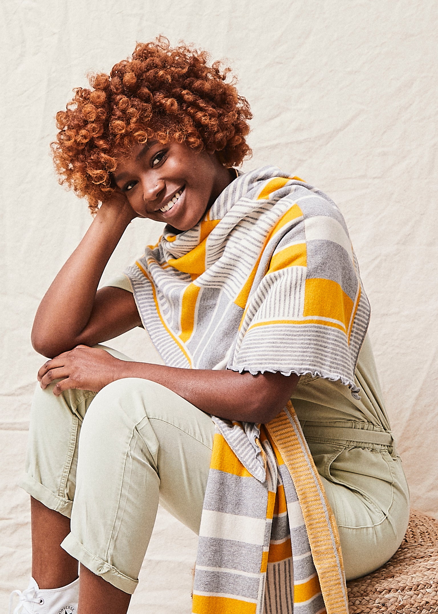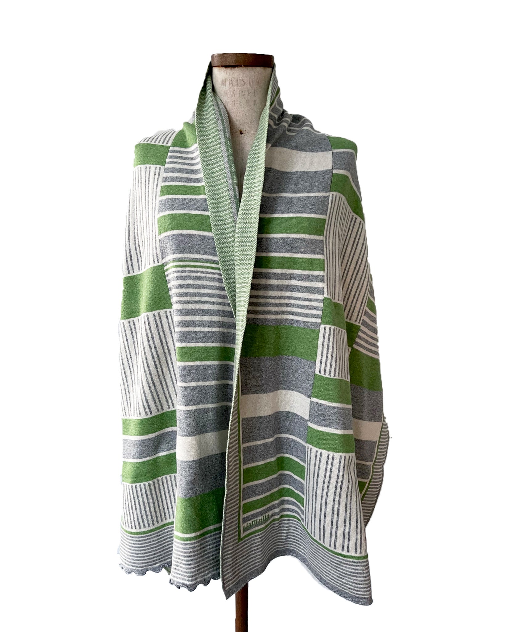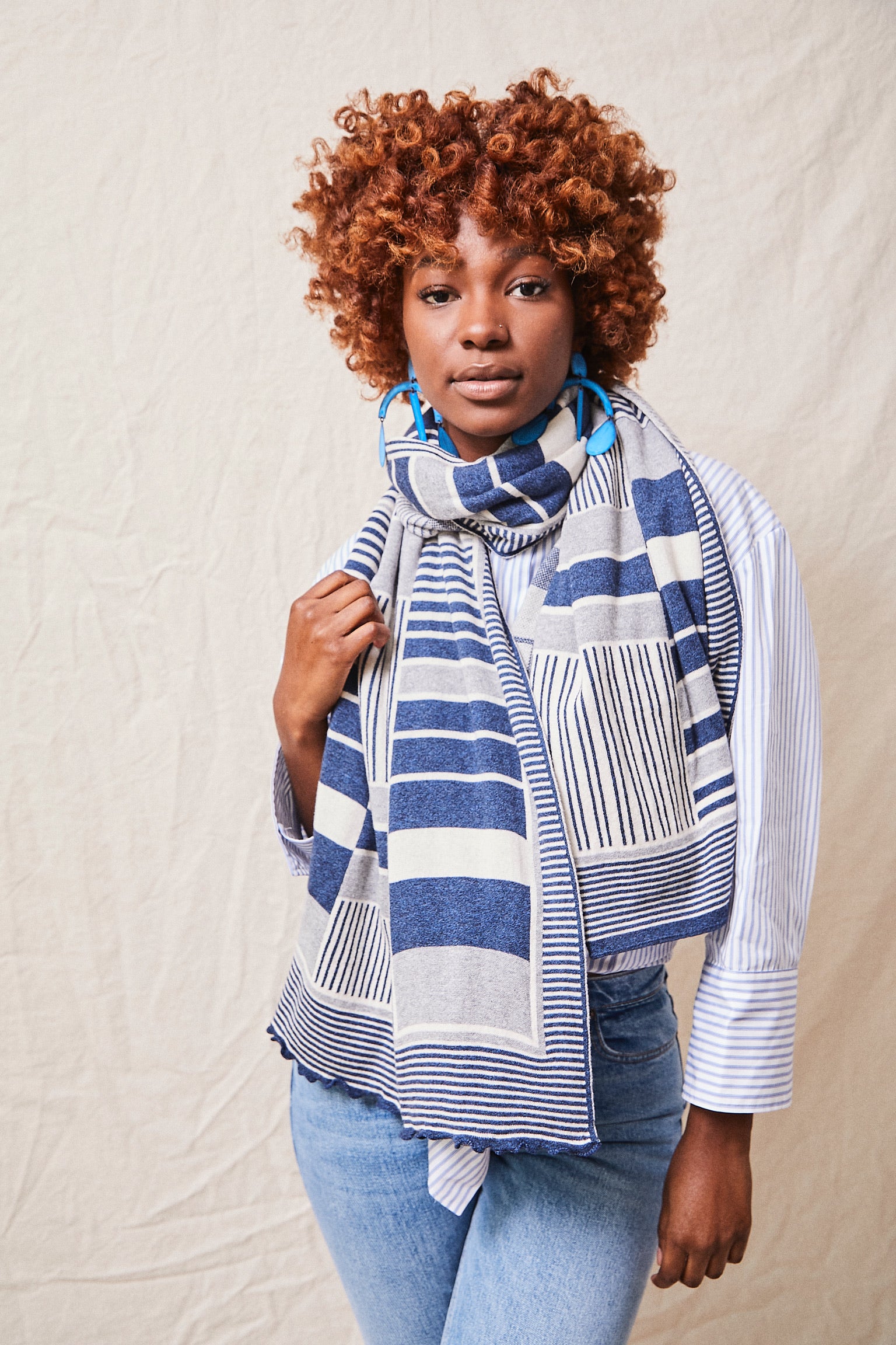 100% Italian spun long staple Egyptian cotton. As soft as cashmere but pure cotton. Great for travel, chilly nights, campfires, and the beach. Wrap it, drape it, knot it into a generous scarf. Reversible for a beautiful drape.